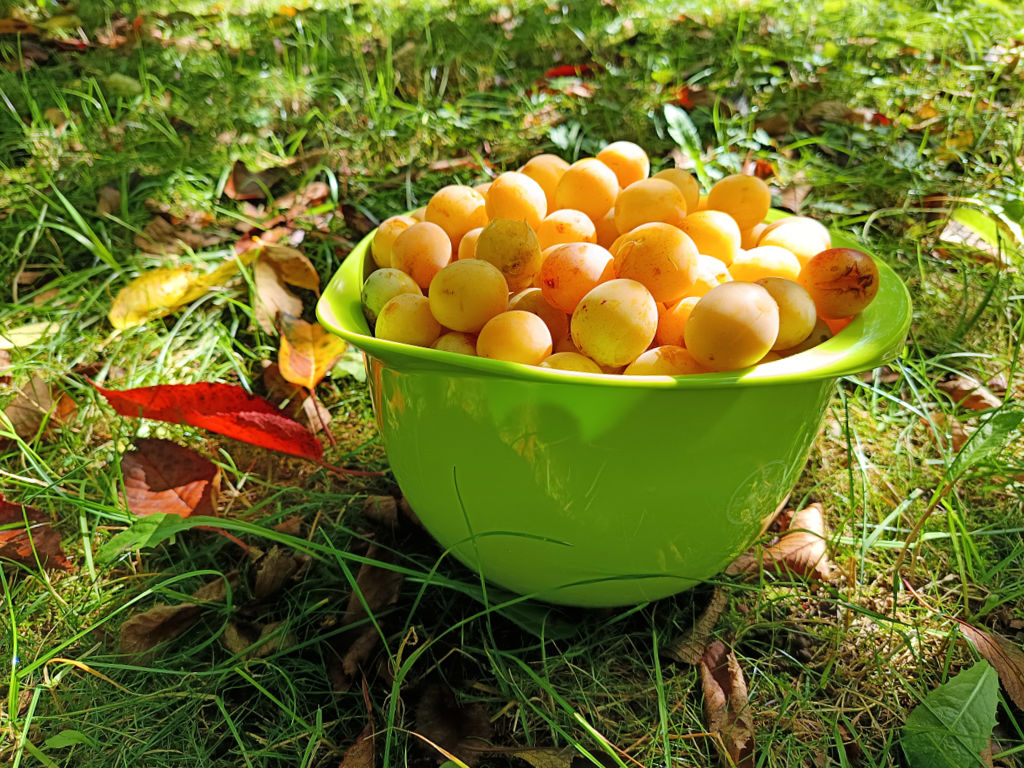 Im Garten begann die Erntezeit. Ich kochte Reneklodenmarmelade und Birnenkompott, Birnen-Mirabellenmarmelade und Mirabellenkompott. Mein Mann backte Mirabellenkuchen. Der war ein Gedicht!