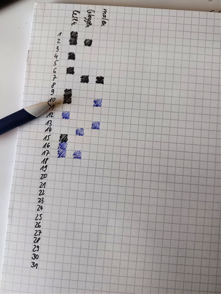 Für Scannerinnen eignet sich diese Variante besonders, wenn du ohnehin einen Planer oder ein Journal führst. Du kannst das Raster bunt gestalten, mit Symbolen arbeiten oder kleine Illustrationen hinzufügen.