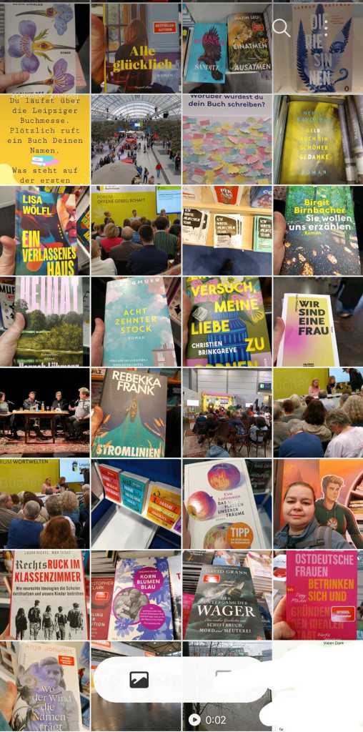 Ich habe fünf Bücher mitgenommen. Drei Romane und zwei Kinderbücher. Zudem habe ich noch einige Leseproben eingesteckt und viele, viele Bücher einfach nur abfotografiert, um sie mir vielleicht später zu kaufen.