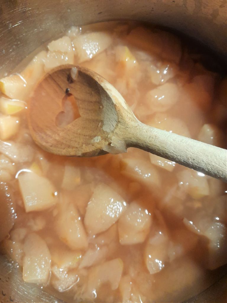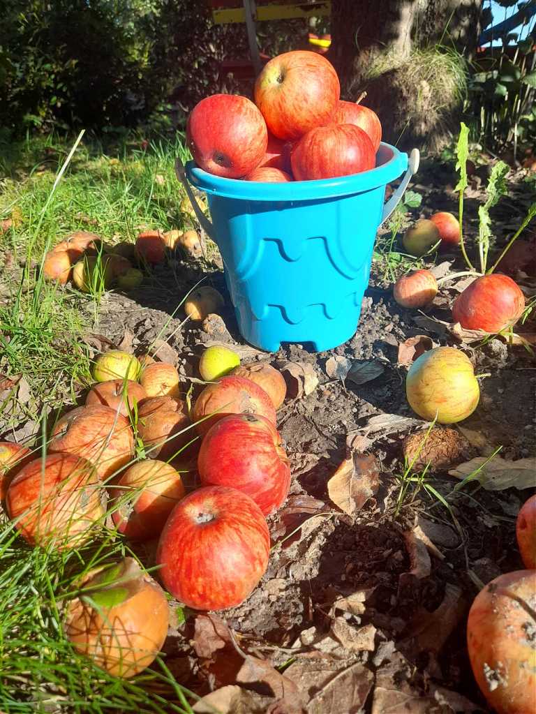 Das Gericht des Monats war Apfelauflauf! Der alte Apfelbaum trug dieses Jahr wunderschöne, rote Früchte.