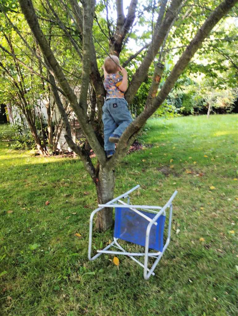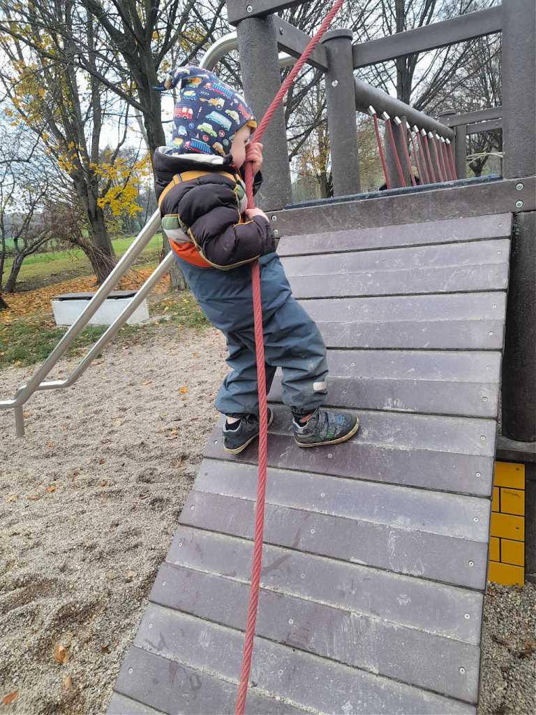 Der Kleine hatte einen Gruppenwechsel im Kindergarten. Er ist jetzt kein Krippenkind mehr. es gab ein Entwicklungsgespräch und er gedeiht prächtig. Diesen Monat ist er unbeobachtet auf einen Baum im Garten geklettert. Er ist ein Wirbelwind und hat auch endlich mal ein bisschen Gewicht zugelegt. Was ein bisschen nervt: Er hat ein niedriges Schlafbedürfnis. In unserem ostdeutschen Kindergarten herrscht Mittagsschlafpflicht. Das bedeutet: Er schläft abends kaum einmal vor 22:00 Uhr ein. Wir haben kaum mal ein Stündchen für uns. Hobbies? Draußen sitzen und den Abend genießen? Fehlanzeige!