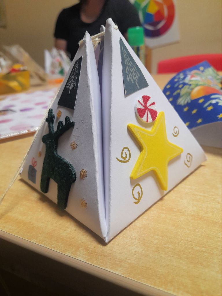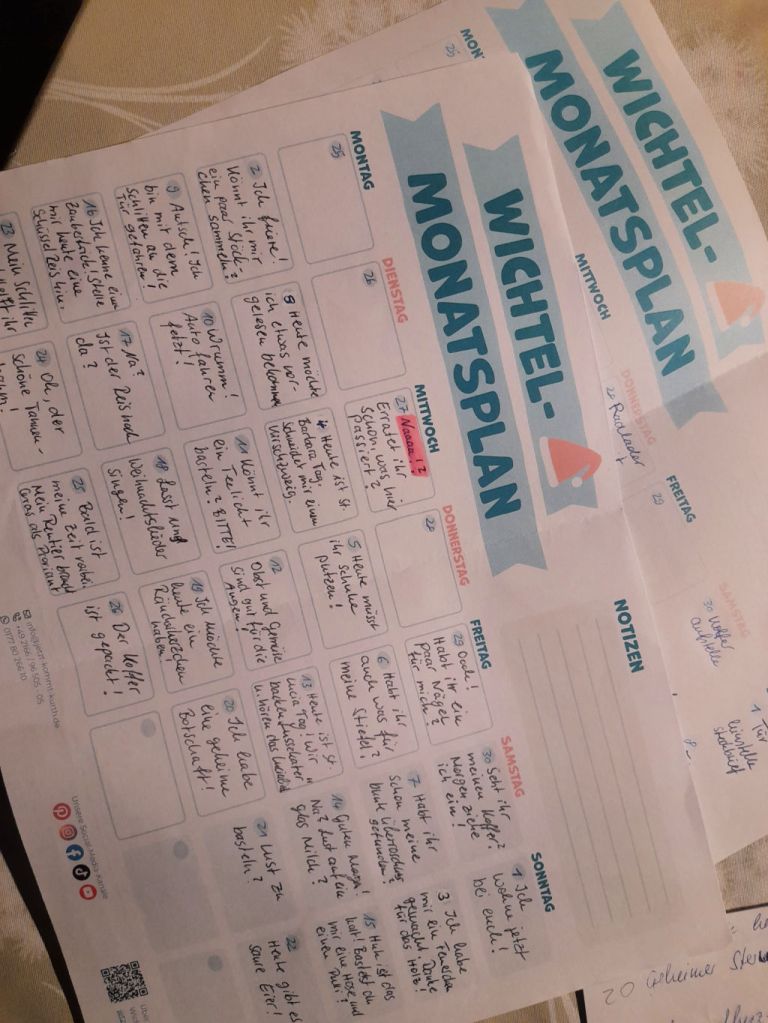 Anfang November lud mich der Kindergarten zum Adventsbasteln ein. Wir gestalteten die Umverpackung für die Weihnachtsgeschenke der Kinder. Das war eine schöne Auszeit für mich.