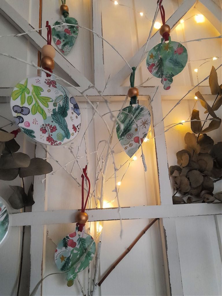 Ich gestaltete weihnachtliche Anhänger selbst.